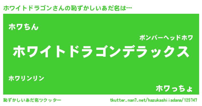 | ヒーロー風カッコイイあだ名 | 『仮面ホワダー』『ネオホワイトドラゴン』 |
