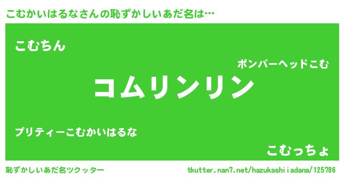 | ヘコむあだ名 | 『こむっぺ』『こむかいはるな(小並感)』 |