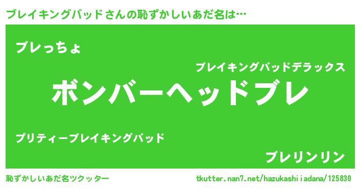 | 男性向けラノベタイトル風あだ名 | 『ノーゲーム・ノーブレイキングバッド』 |