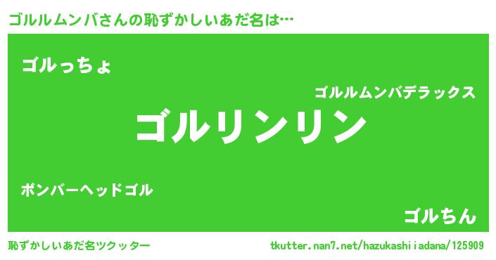 | 男性向けラノベタイトル風あだ名 | 『この素晴らしい世界にゴルルムンバを!』 |