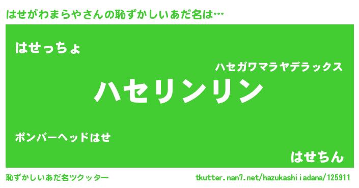 | 意味不明あだ名 | 『とにかく怪しいはせがわまらや』 |