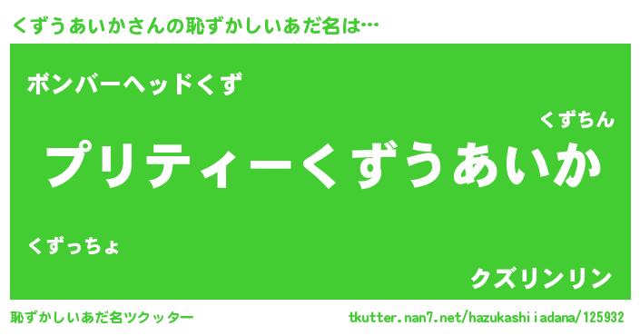 | ヒーロー風カッコイイあだ名 | 『スーパークズウアイカ』『仮面クズダー』 |