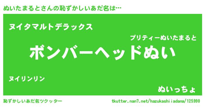 | 男性向けラノベタイトル風あだ名 | 『ノーゲーム・ノーヌイタマルト』 |