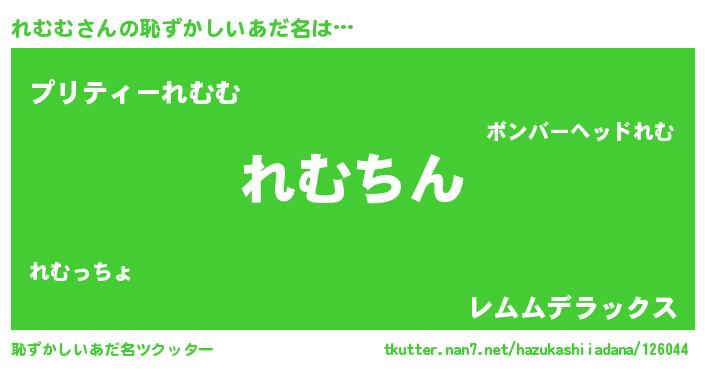 | ヘコむあだ名 | 『れむむ(苦笑)』『れむにー』 |