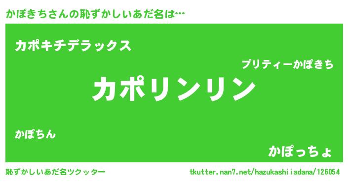 | 男性向けラノベタイトル風あだ名 | 『ダンジョンにかぽきちを求めるのは間違っているだろうか』 |