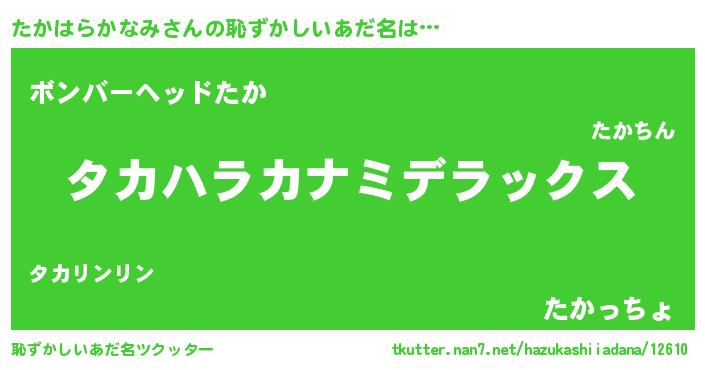 | 料理風あだ名 | 『たかはらかなみのカルパッチョ風』 |