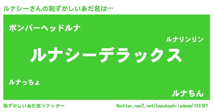| 意味不明あだ名 | 『自称ルナシー』『永久保存ルナシー』 |