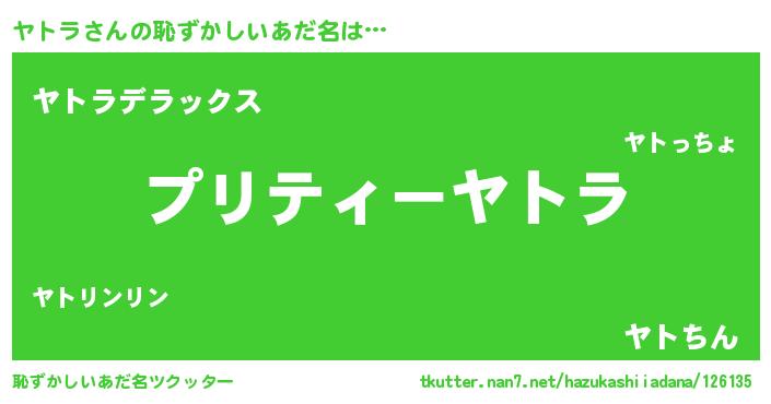| ヘコむあだ名 | 『ヤトふぇ~』『ヤトラ(震え声)』 |