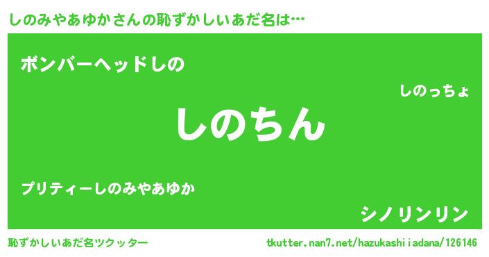 | ヘコむあだ名 | 『しのみやあゆか(笑)』『しのっぺ』 |