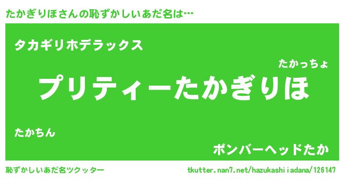 | 意味不明あだ名 | 『ペロリンたかぎりほ』『自称たかぎりほ』 |
