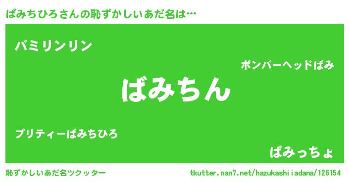 | ヘコむあだ名 | 『ばみちひろ(笑)』『ばみっ子』 |