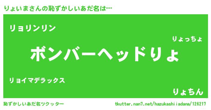 | ヒーロー風カッコイイあだ名 | 『正義の使者りょいま』『暗黒騎士リョ』 |