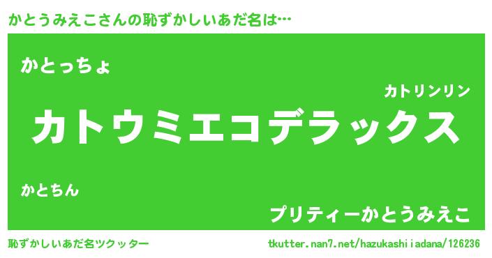 | ヒーロー風カッコイイあだ名 | 『ウルトラ戦士カトウミエコ』 |