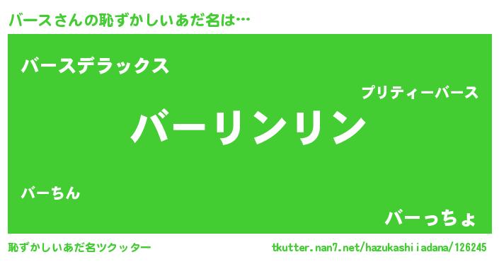 | ヘコむあだ名 | 『バーっちょ』『豆乳』『バーふぇ~』 |