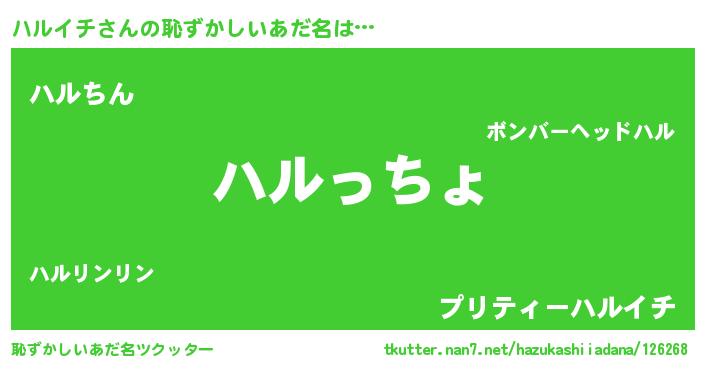 | ヒーロー風カッコイイあだ名 | 『ウルトラハルイチマン』『ネオハルイチ』 |