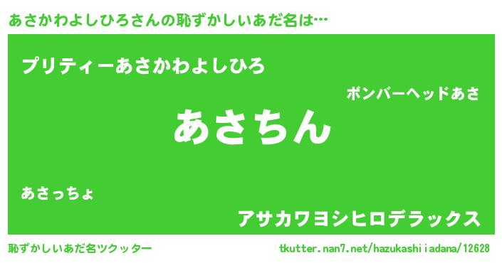| ヘコむあだ名 | 『あさかわよしひろ(震え声)』『あさにゅー』 |