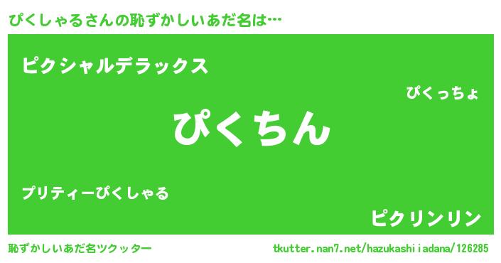 | 意味不明あだ名 | 『永久保存ぴくしゃる』『自称ぴくしゃる』 |