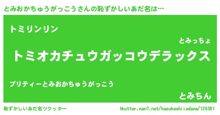 | 女子向けラノベタイトル風あだ名 | 『とみおかちゅうがっこうなんてお断りですっ。』 |