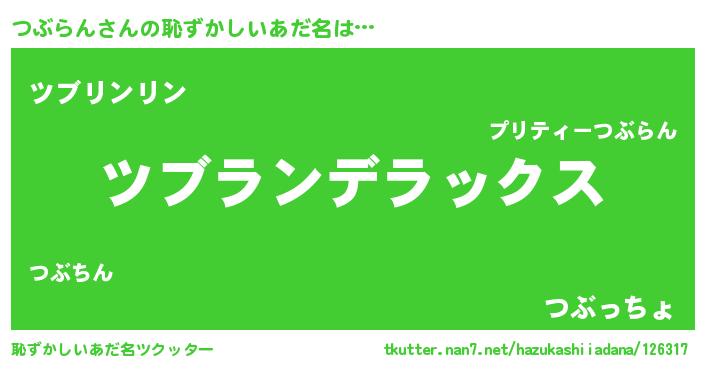 | 意味不明あだ名 | 『自称つぶらん』『たけのこ科つぶらん属』 |