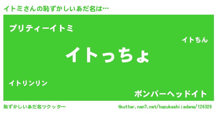 | 欧米人風あだ名 | 『イトミクリステル』『ダレノガレイトミ』 |