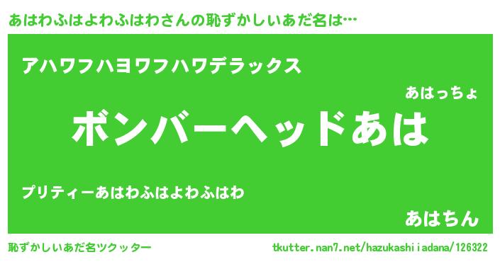| ヒーロー風カッコイイあだ名 | 『慈愛の使者あはわふはよわふはわ』 |