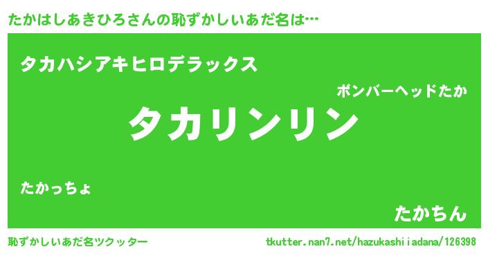 | 意味不明あだ名 | 『とにかく怪しいたかはしあきひろ』 |