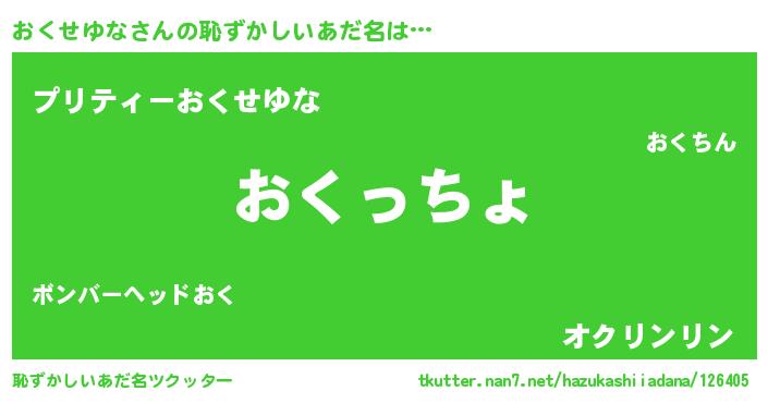 | 欧米人風あだ名 | 『おくせゆな・ステッグマイヤー』 |