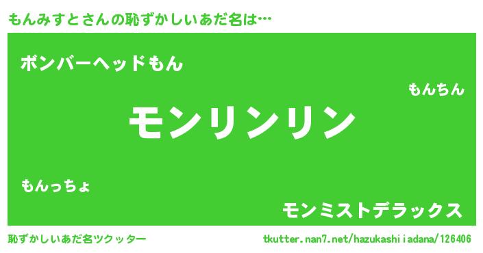 | 胡散臭い通販商品みたいなあだ名 | 『信頼と実績のサプリメント…その名も「もんみすと」』 |