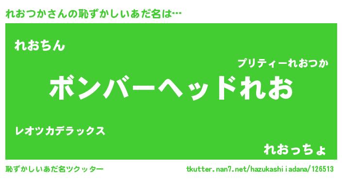 | ヒーロー風カッコイイあだ名 | 『慈愛の使者れおつか』『ネオレオツカ』 |
