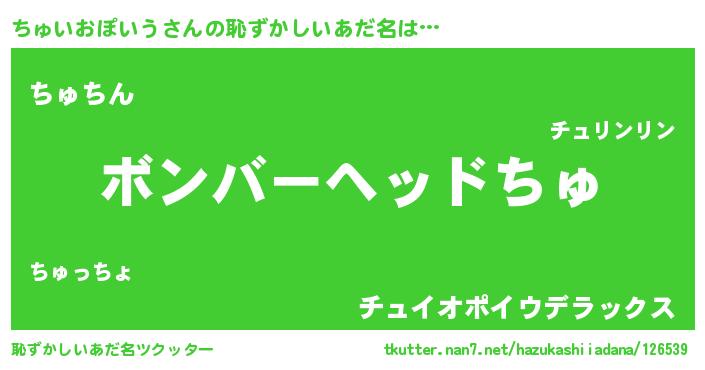 | ヘコむあだ名 | 『ちゅいおぽいう(笑)』『ちゅを』 |