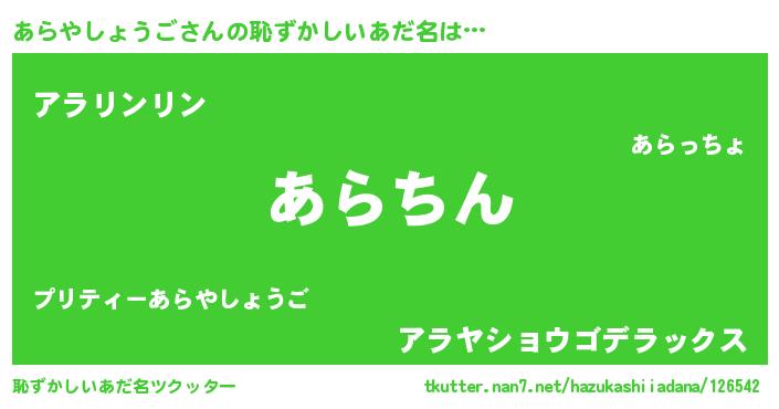 | ヘコむあだ名 | 『あらやしょうご(遠い目)』『あらっ子』 |