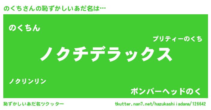 | ヒーロー風カッコイイあだ名 | 『仮面ノクダー』『最強戦士ノクチ』 |