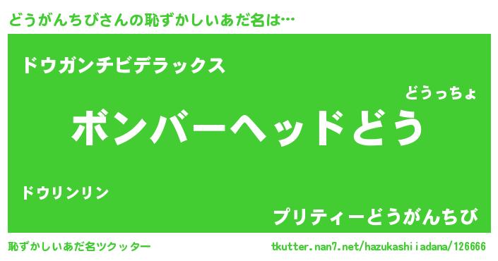 | 男性向けラノベタイトル風あだ名 | 『この素晴らしい世界にどうがんちびを!』 |