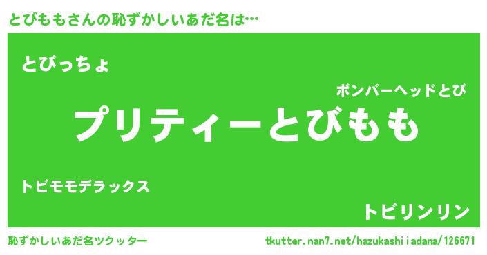 | ヒーロー風カッコイイあだ名 | 『スーパートビモモ』『天弓騎士トビ』 |