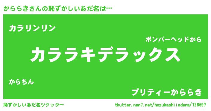 | ヒーロー風カッコイイあだ名 | 『最強戦士カララキ』『天弓騎士カラ』 |