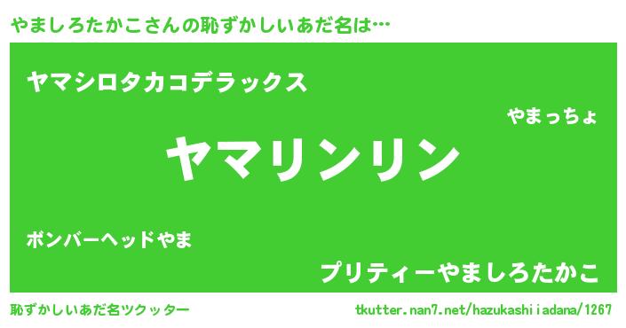 | 意味不明あだ名 | 『とにかく怪しいやましろたかこ』 |