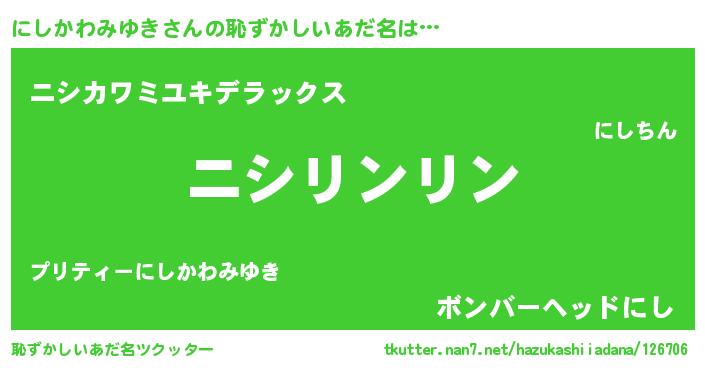 | ヘコむあだ名 | 『にしを』『にしかわみゆき(笑)』 |