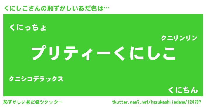 | 意味不明あだ名 | 『ペロリンくにしこ』『永久保存くにしこ』 |