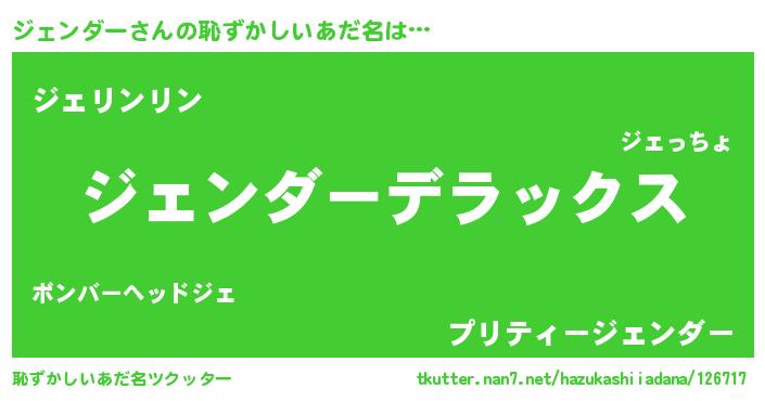 | ヒーロー風カッコイイあだ名 | 『最強戦士ジェンダー』『仮面ジェダー』 |