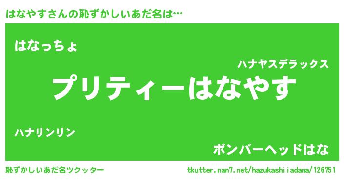 | 意味不明あだ名 | 『ペロリンはなやす』『自称はなやす』 |