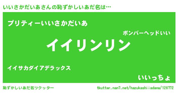 | 意味不明あだ名 | 『とにかく怪しいいいさかだいあ』 |
