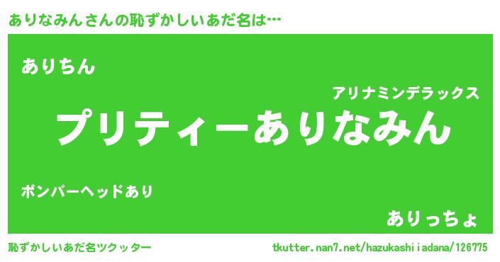 | ヘコむあだ名 | 『ありにー』『ありなみん(小並感)』 |