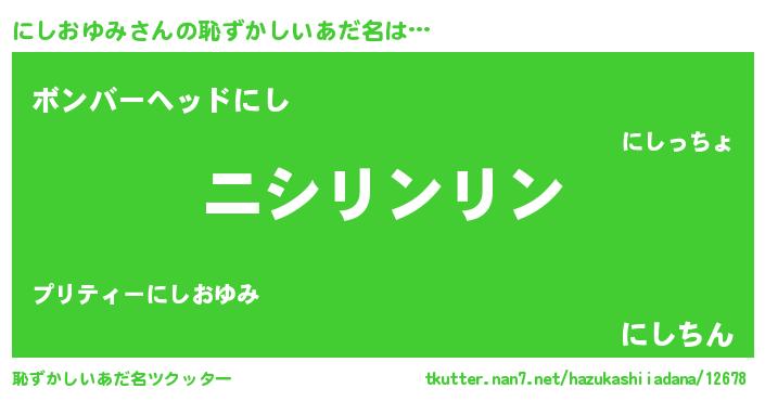 | ヘコむあだ名 | 『にしぷりん』『にしおゆみ(笑)』 |