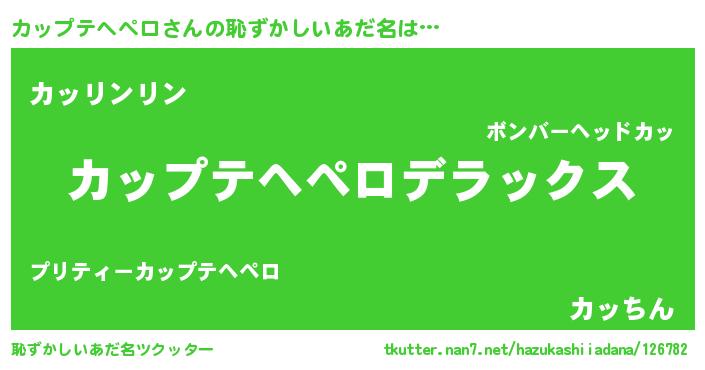 | 男性向けラノベタイトル風あだ名 | 『カップテヘペロスレイヤー』 |
