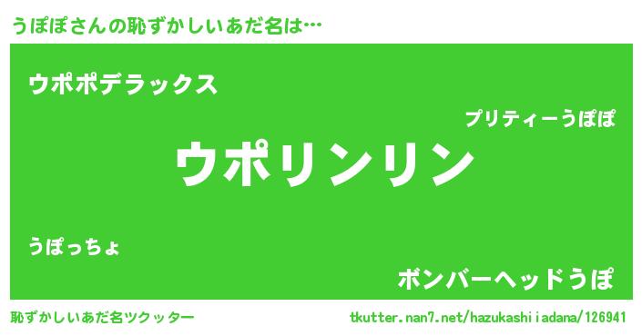 | ヘコむあだ名 | 『うぽっちょ』『うぽもー』 |