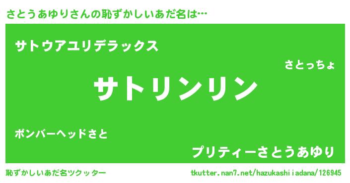 | 意味不明あだ名 | 『とにかく怪しいさとうあゆり』 |