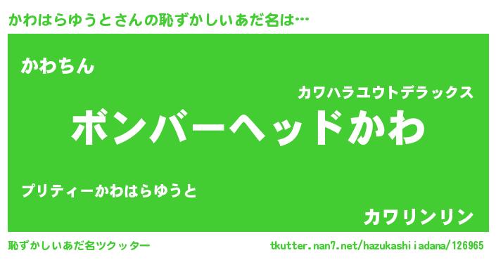 | ヘコむあだ名 | 『かわはらゆうと(苦笑)』『かわっ子』 |