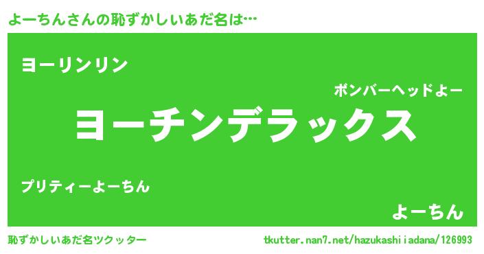 | ヘコむあだ名 | 『よーを』『よーちん(爆)』『豆乳』 |