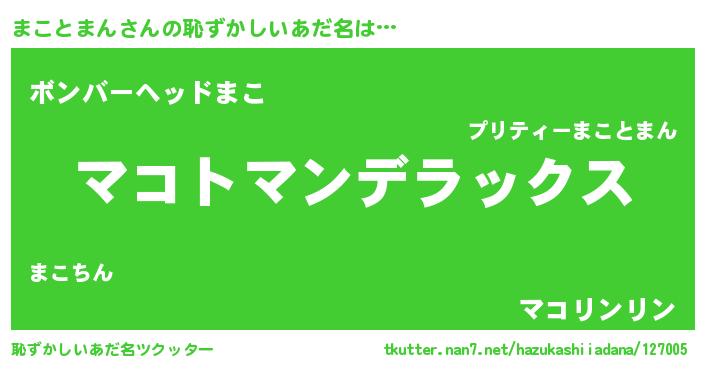 | 男性向けラノベタイトル風あだ名 | 『転生したらまことまんだった件』 |