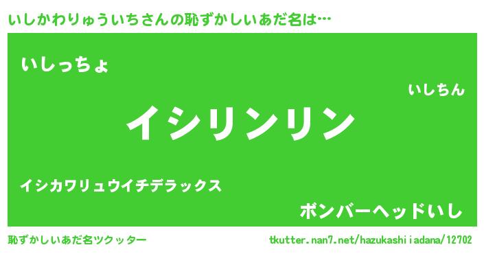 | 男性向けラノベタイトル風あだ名 | 『この素晴らしい世界にいしかわりゅういちを!』 |